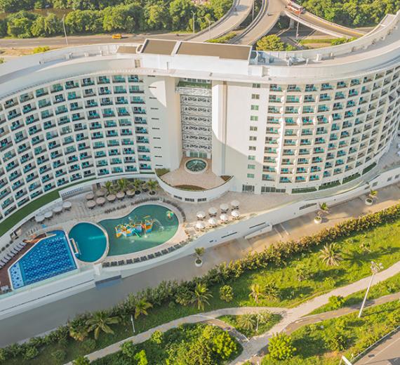 GHL Relax Hotel Corales de Indias es una imponente edificación en forma de ola con sus 250 habitaciones amplias, iluminadas y confortables. Todas cuentan con balcón y vista al mar, minibar y cajilla de seguridad, TV con canales internacionales, wifi, aire acondicionado, servicio de Room Service y Guest Service las 24 horas.