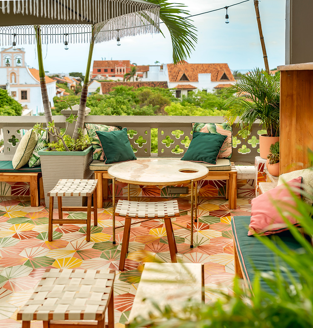 Un hotel boutique de once habitaciones en el corazón del centro histórico de Cartagena, lleno de arte moderno local y colombiano.