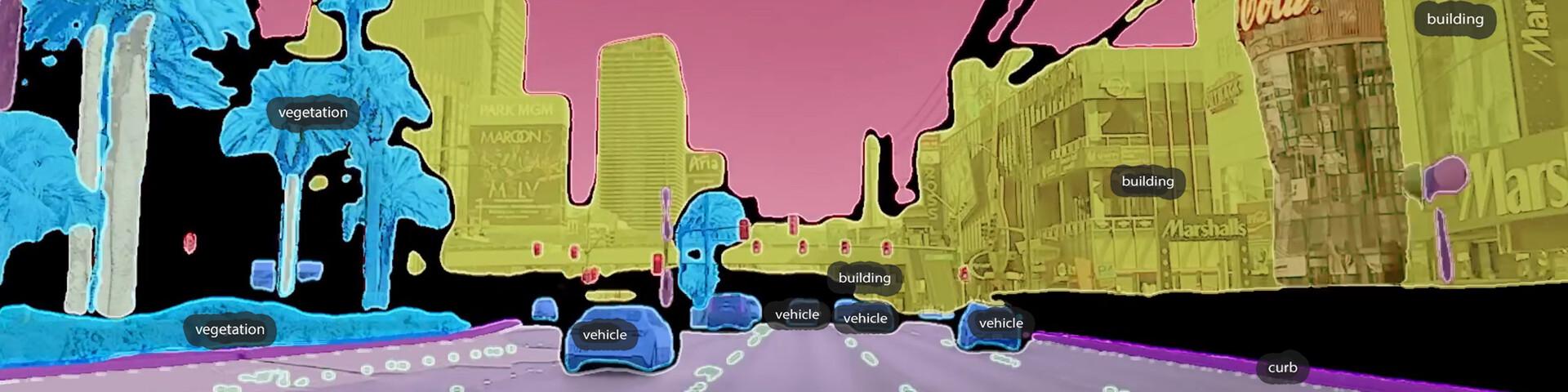 A partir de retazos procesados se compone, pedazo por pedazo, el calco digital de un mundo urbano. Vemos emerger del vacío fragmentos híperpixelados de avenidas y calles, y trabajadores anónimos describen sus condiciones laborales en Kenia y Filipinas. Su tarea consiste en disecar algunas fotografías en los elementos que las componen –ambulancia, humano, vegetación, hidrante– para que vehículos sin conductor aprendan a tomar decisiones autónomas al circular por las calles estadounidenses. Este retrato de la cartografía contemporánea revela cómo la artesanía humana y la desigualdad poscolonial yacen escondidas tras la ilusoria sofisticación futurista.