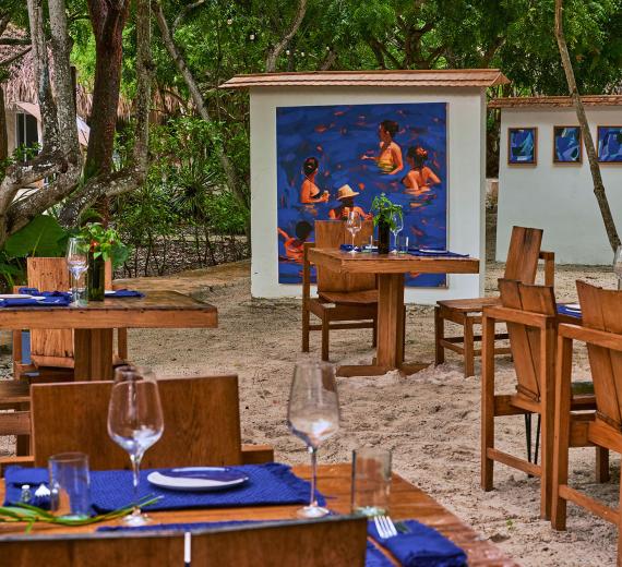 Aquí, los días transcurren entre largos almuerzos frente al mar, cócteles al atardecer y una conexión auténtica con la isla. La cocina se centra en ingredientes éticamente obtenidos y preparaciones frescas que celebran el sabor, el producto y la comunidad local.