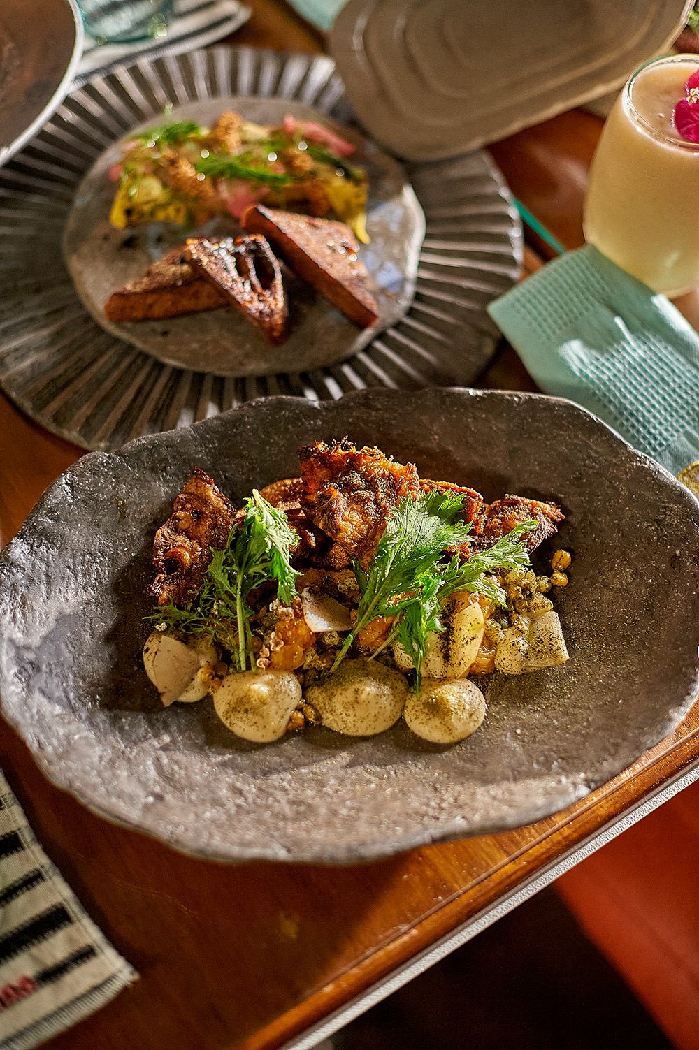 Creemos firmemente que aprovechar al máximo cada ingrediente es la mejor forma de honrarlos y respetarlos, por eso usamos técnicas de conservación artesanal como ahumados, curados, fermentados y encurtidos, elaborados en nuestra propia cocina.