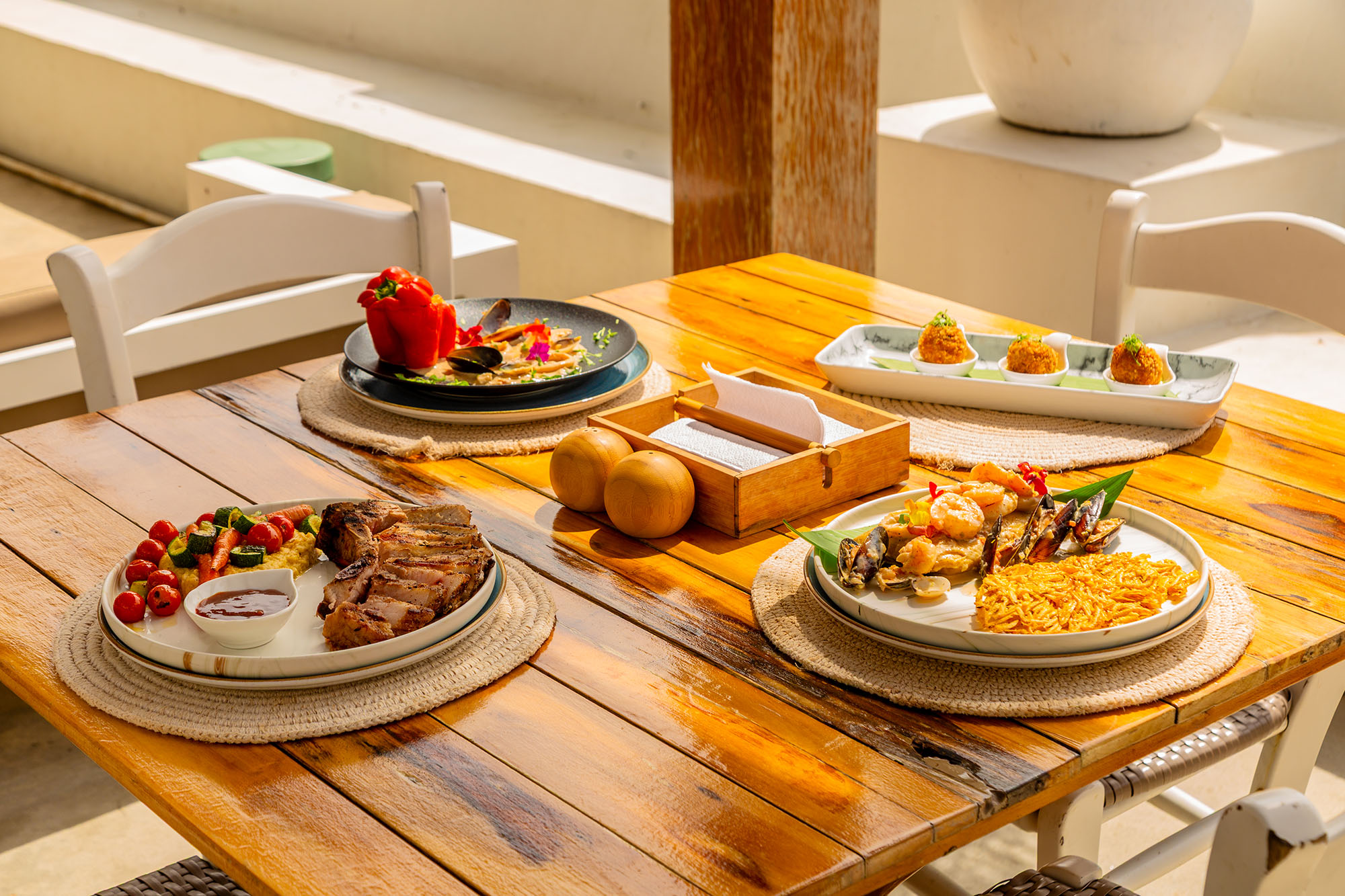 Nuestro restaurante es una celebración de los sabores del Mediterráneo y el Caribe , combinados con técnicas de alta cocina y coctelería de autor. Cada plato y bebida cuenta una historia, diseñada para deleitar tus sentidos mientras disfrutas de un sunset incomparable frente al mar.