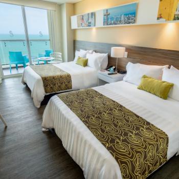 GHL Relax Hotel Corales de Indias es una imponente edificación en forma de ola con sus 250 habitaciones amplias, iluminadas y confortables. Todas cuentan con balcón y vista al mar, minibar y cajilla de seguridad, TV con canales internacionales, wifi, aire acondicionado, servicio de Room Service y Guest Service las 24 horas.