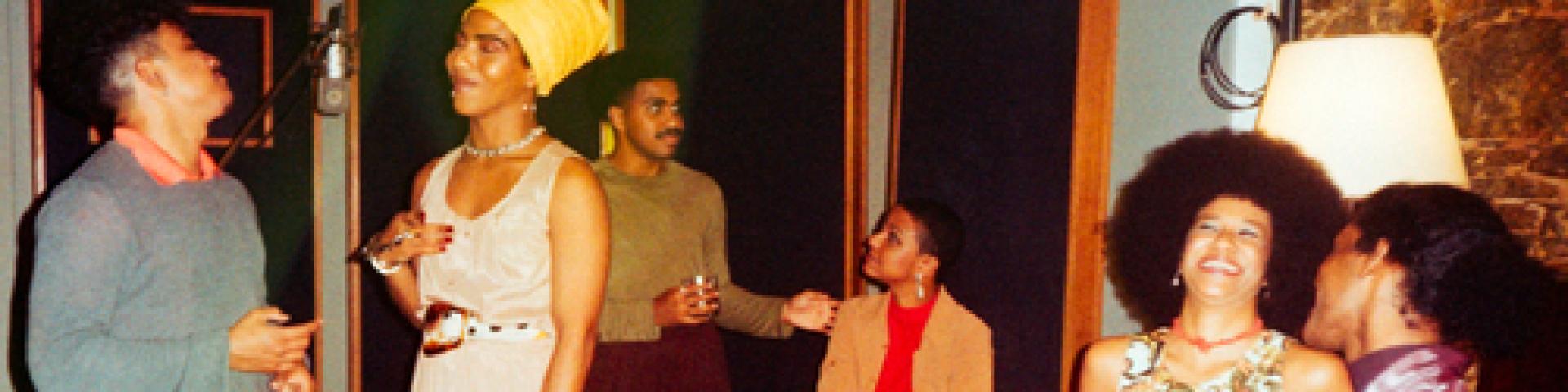 En un estudio de Río de Janeiro en 1975, durante la dictadura militar que asoló Brasil durante 21 años, un grupo de amigos se reúne para leer una carta. A pesar de la premisa sencilla, *Voz Zov Vzo* ofrece una perspectiva singular de la experiencia negra durante ese período, silenciada en sus reivindicaciones tanto por el Estado represor como por la militancia progresista. Con una propuesta experimental, la película recurre a elementos del teatro y la performance para crear un ambiente propicio en el que Yhuri Cruz se encuentre con la máxima de Suely Carneiro: «entre la izquierda y la derecha, sigo siendo negra».