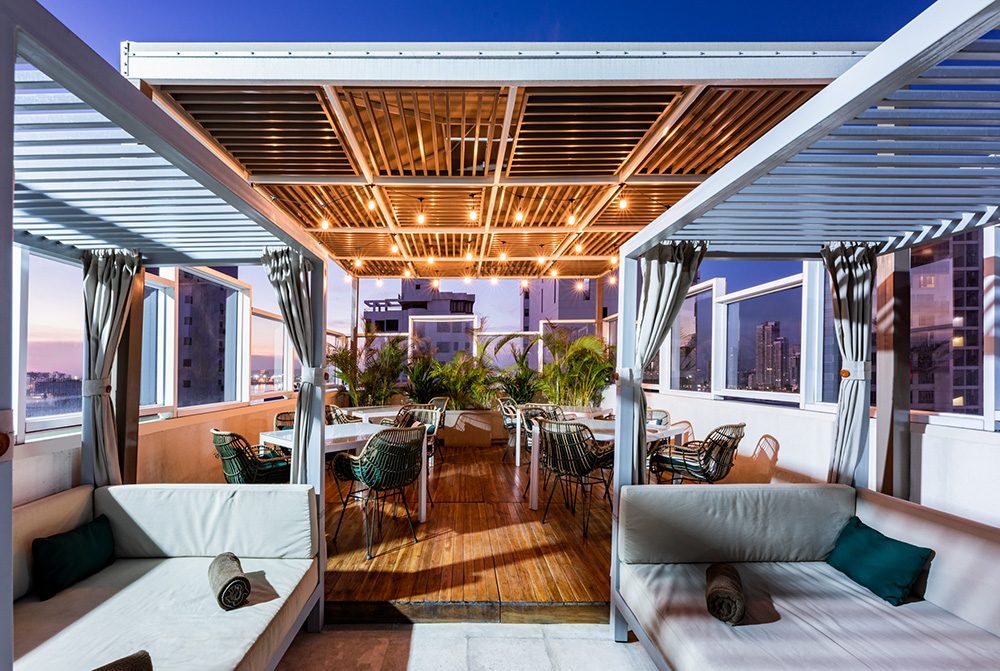 Nuestro Rooftop By Listo, se encuentra en el piso 14 del hotel Holiday Inn Express Cartagena Bocagrande, al lado de nuestra piscina con un ambiente tipo lounge y fresco, donde podrás disfrutar de espectaculares atardeceres, con una variedad gastronómica y bebidas con y sin alcohol, disponible de 10 am hasta las 11 pm todos los dias.
